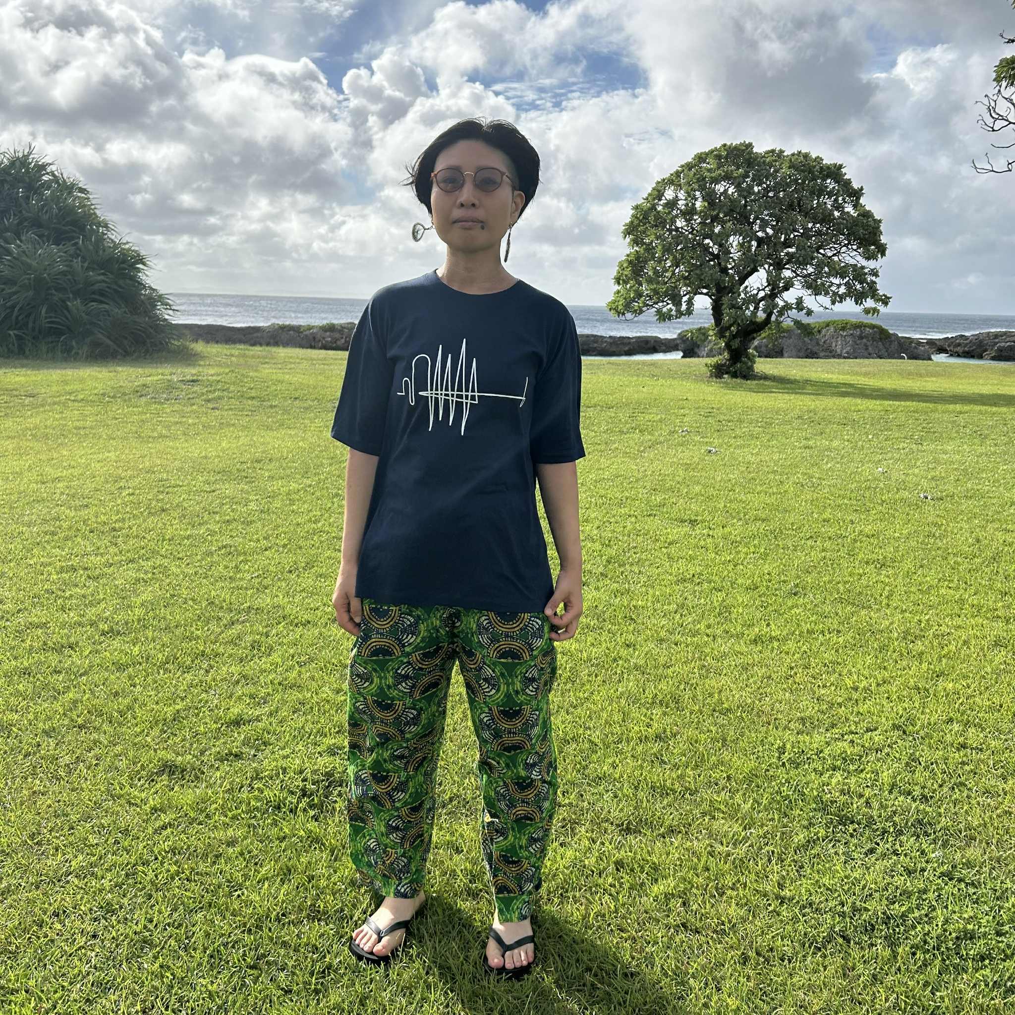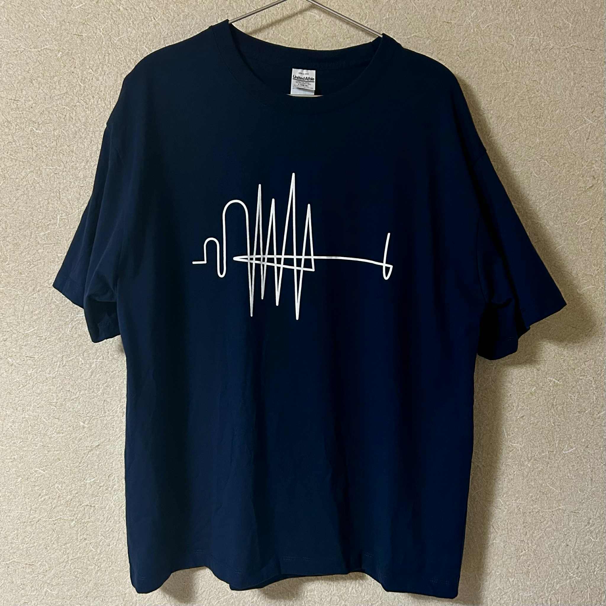 ボディはボックスシルエットのネイビーカラー、ロゴは白。
